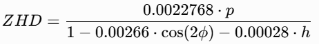- 常数 0.0022768:由大气折射率和重力常数推导得出(单位:m/hPa)。