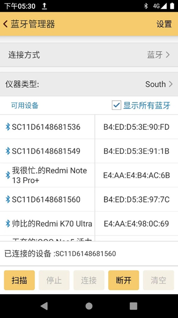 设备连接:在软件界面中进入“设备连接”菜单,找到与RTK接收机对应的设备编号并建立连接。若未自动识别设备,可选择“扫描”功能,软件将自动搜索并列出可用的接收机。连接成功后,软件会显示确认信息。