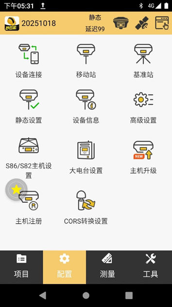 2. 启动软件:在连接的手簿上打开工程之星软件。该软件是RTK测量的数据管理中心,用于配置参数和记录观测数据。